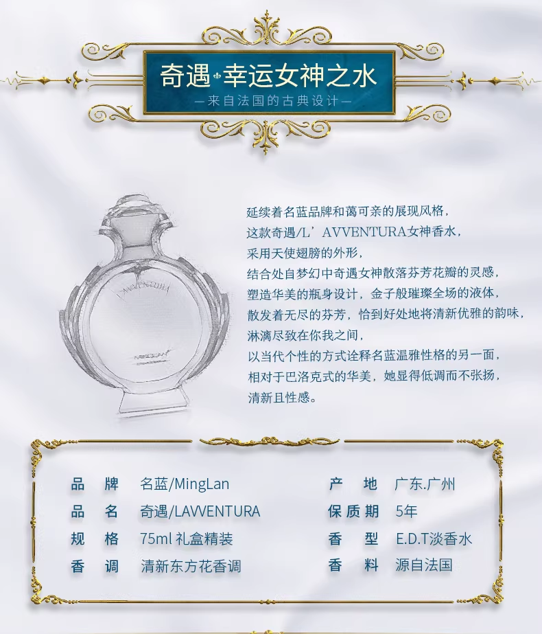 名藍奇遇香水女士持久留香淡香清新自然大牌正品女人味