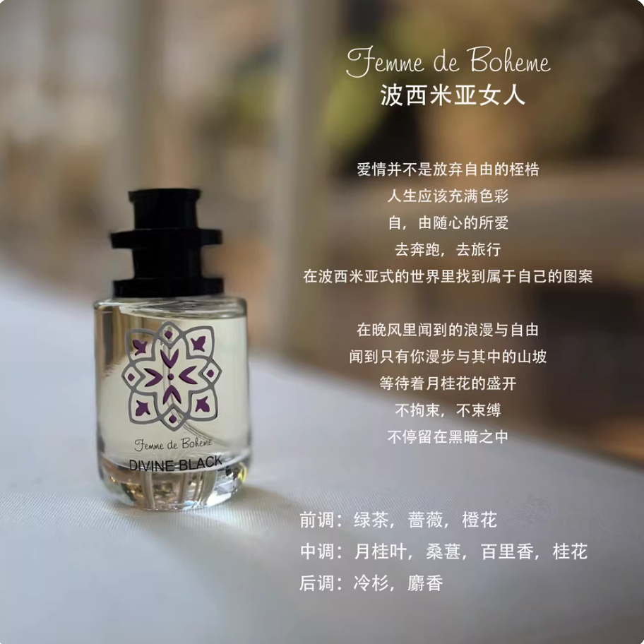 天賜之幕Divine Black小眾淡香水波西米亞雪松木質香玫瑰持久留香