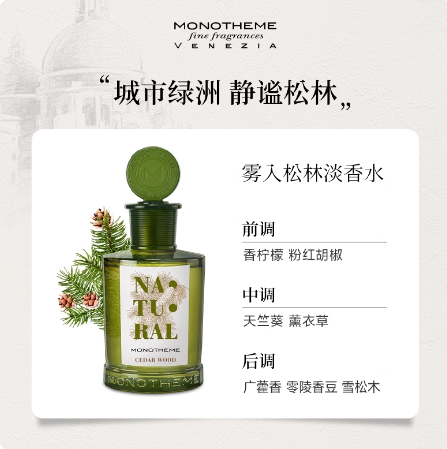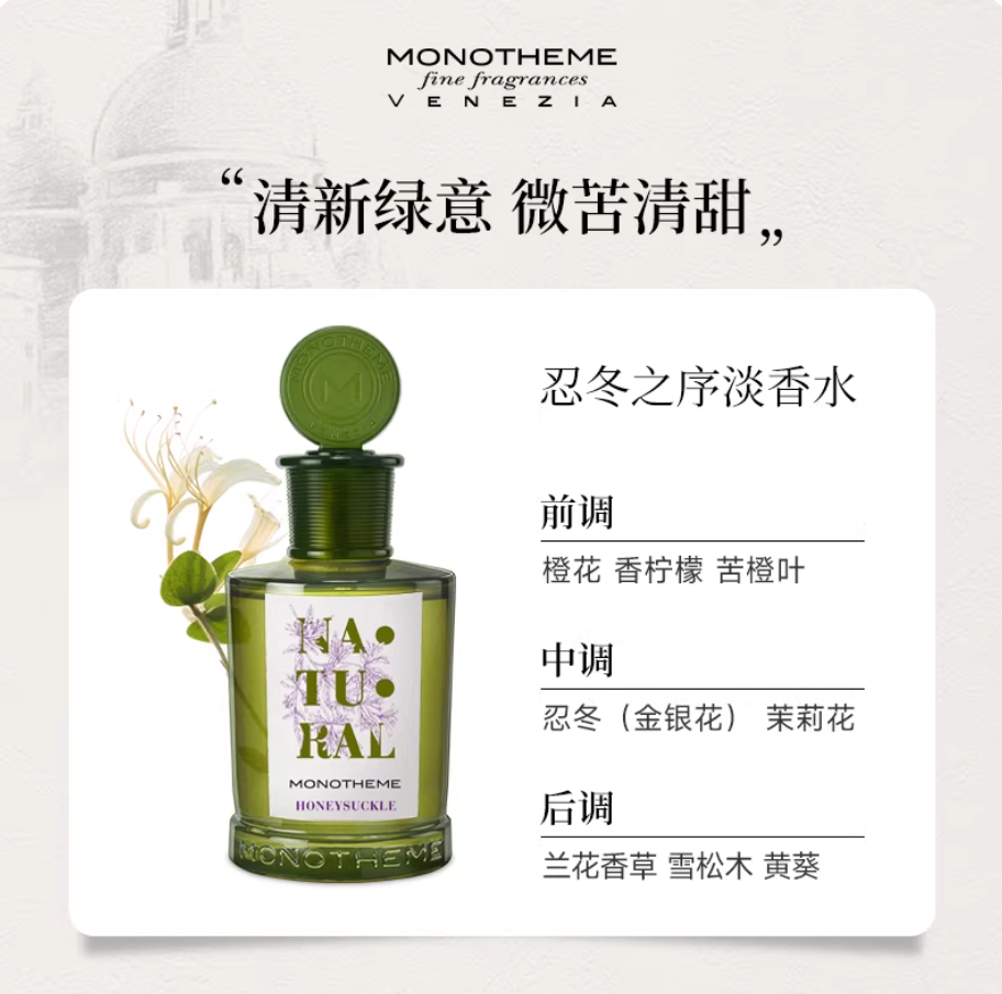Monotheme自然系列女士香水忍冬之序霧入松林柚見微光淡香水